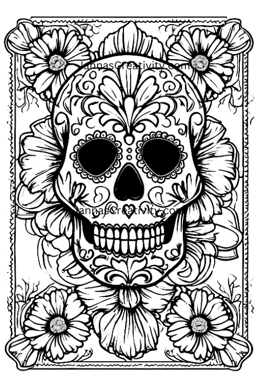 Calavera (Sugar Skull) Coloring Page Freebie 1