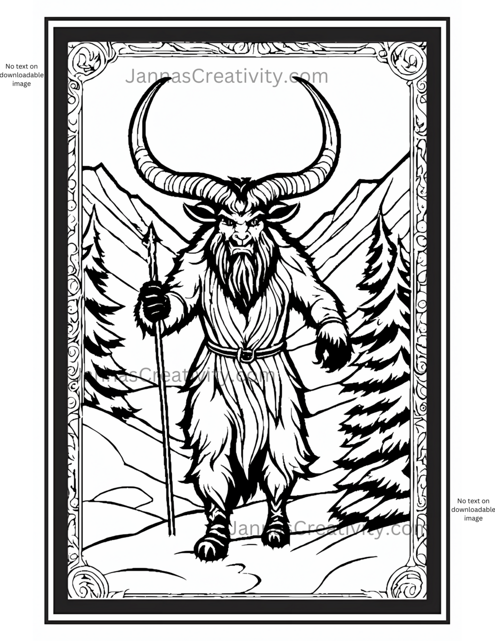 A lovingly drawn Krampus for you to download and color in. The website text is not on the downloadable image. Part of an unfinished and unreleased adult coloring book theme. Ready for you to download and print out. Free image 1/2.